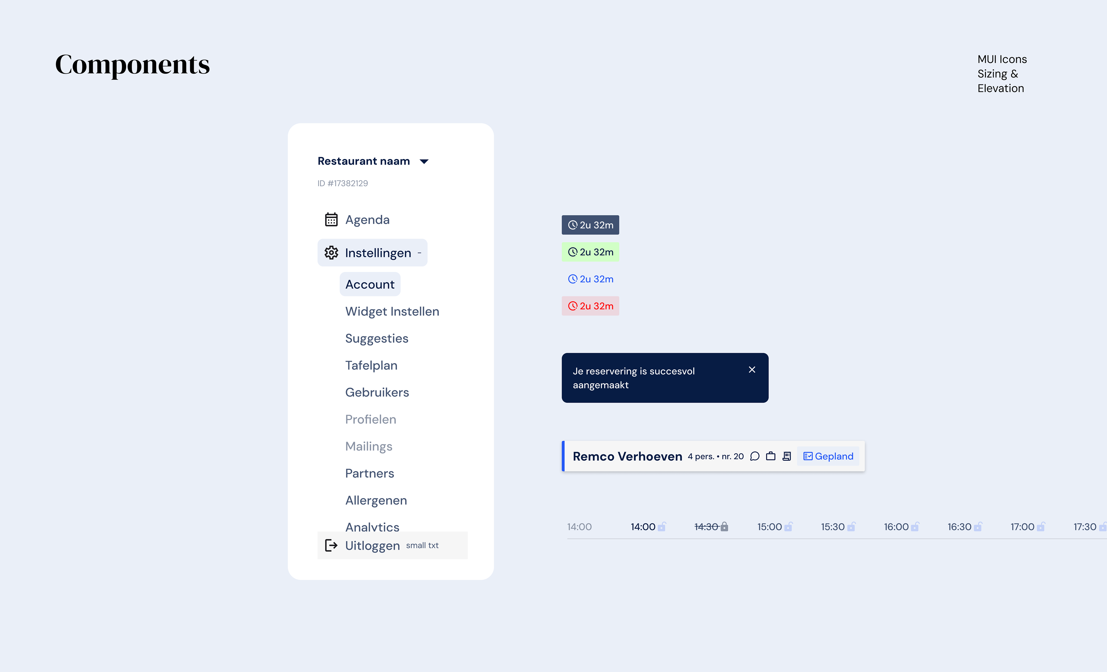 For WeReserve, a tool for restaurant owner, I was asked to help out improve their product. Starting with the design system which needed to be solid and robust. Setting up the basics provided a foundation upon which we could build the product.